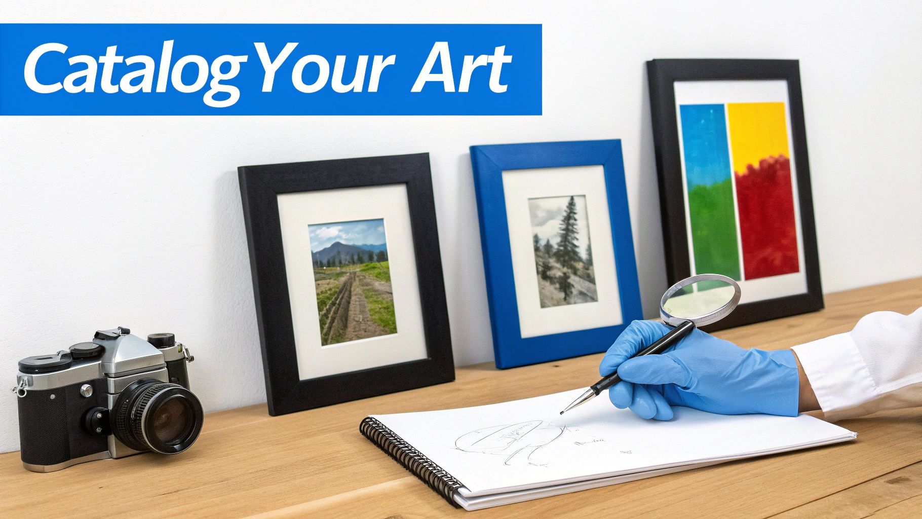 Before you can even think about listing a single piece of art, you have to know exactly what you’re working with. A thorough inventory isn't just a simple list; it's the bedrock of your entire art estate sale. This part of the process is less about being an art historian and more about being a detective, gathering the crucial details that will ultimately determine value and catch a buyer's eye.