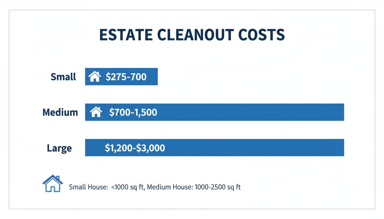 Digging into the numbers, you see a pretty clear pattern. A small apartment cleanout typically runs between $275–$700. A medium-sized home? You’re likely looking at $1,200–$3,000. To get a better handle on budgeting, you can compare these figures to our guide on the cost of an estate sale and see how the numbers stack up against other ways of clearing a property.