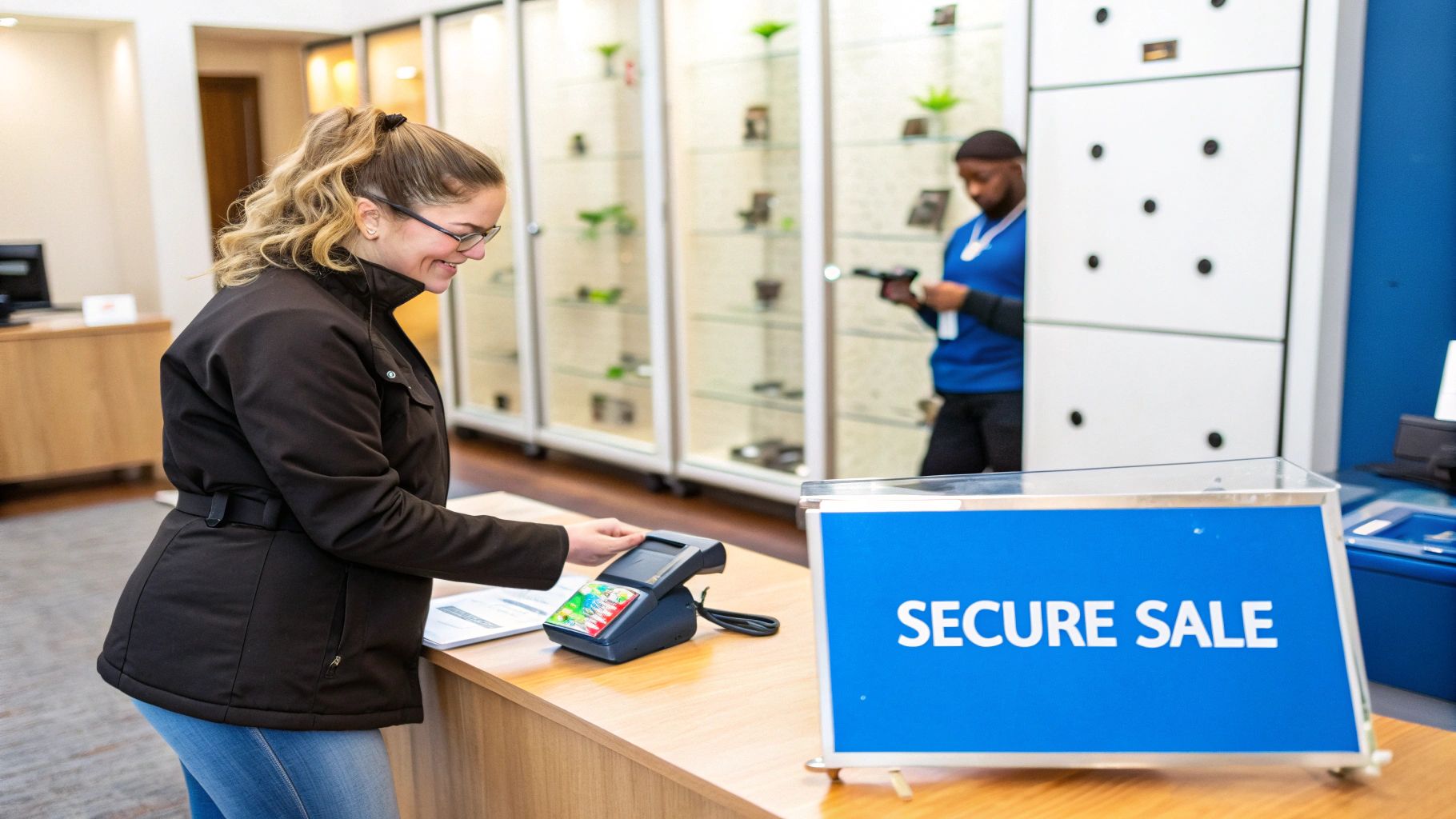 Pick one spot for your checkout area, preferably somewhere well-lit and near the exit. This keeps the whole process organized and funnels all transactions through one secure location.
