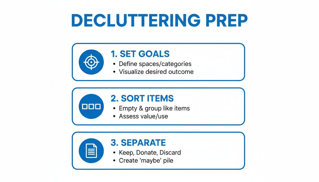 This simple graphic breaks down the essential prep work for any decluttering project.