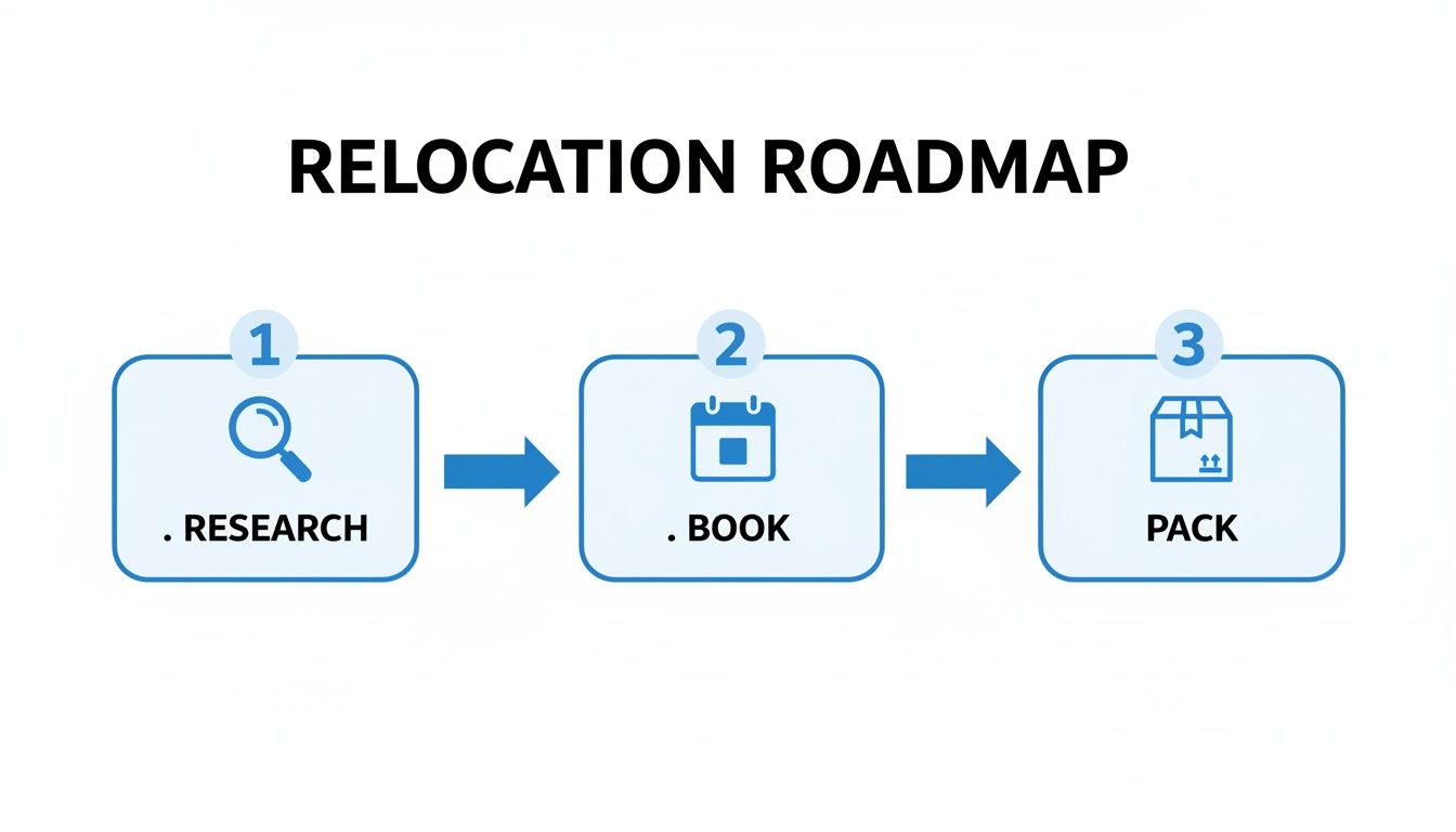 Forget trying to tackle everything at once. We’ll break this down into 90, 60, and 30-day windows. This approach keeps you focused on what needs to happen now, from the big-picture research to the last box you tape up.