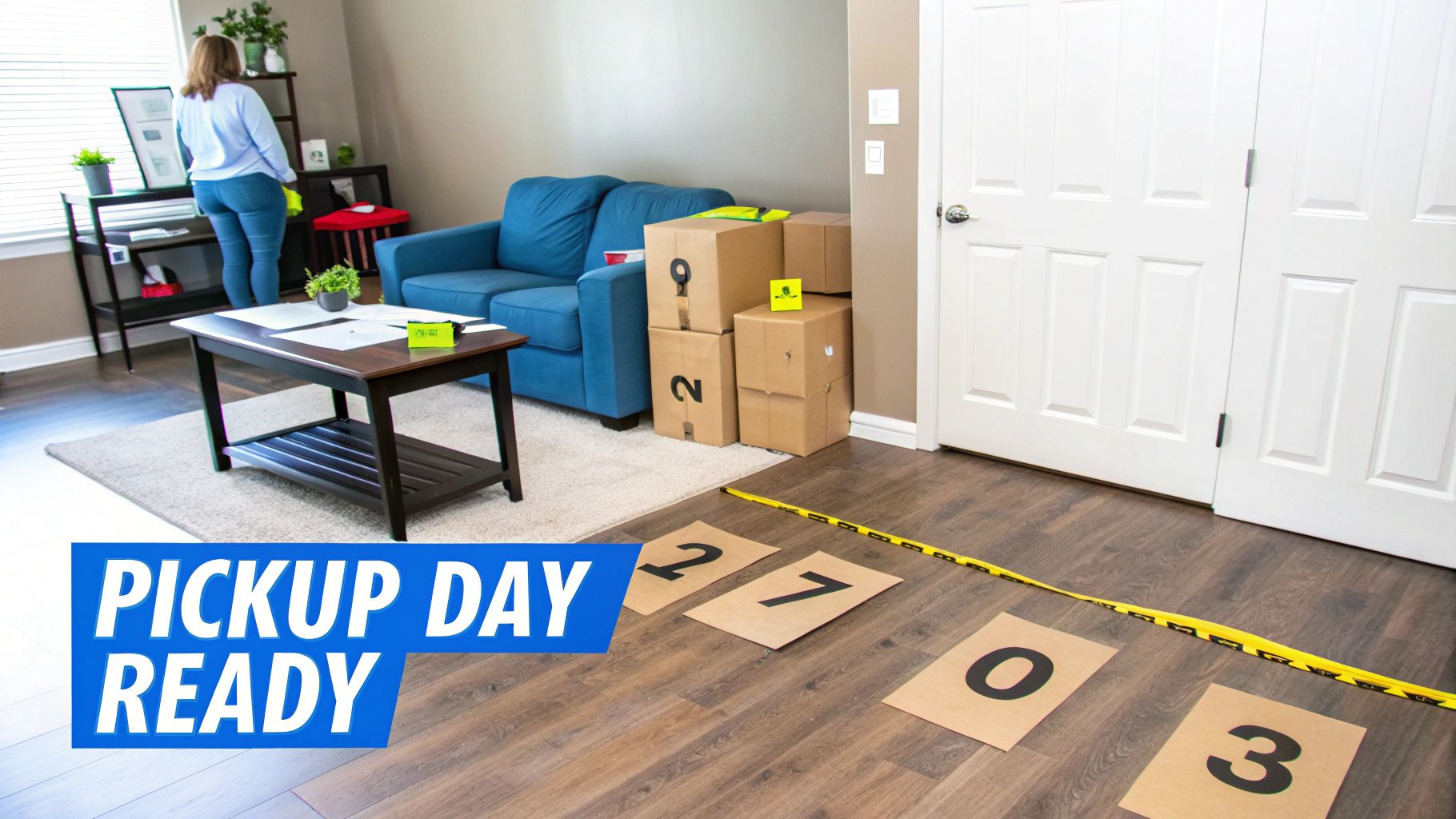 First things first: clear the way. Remove any tripping hazards like area rugs, loose cords, or stray boxes from the main walkway. You want an obvious path from the front door to the pickup area so there's zero confusion.